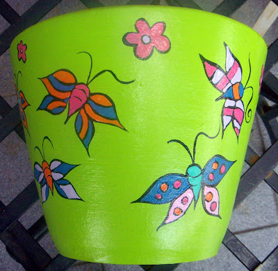 Estou pintando vários e vários vasinhos, fazendo uma coleção nova, com os desenhos de sempre e mais alguns novos, pra não faltar pra ninguém.