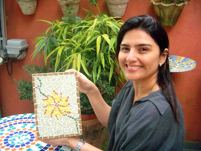 Esta é minha aluna Gerliza, láaaaaaaaaa de Natal, sobrinha da Ilza, que fez CURSO DE MOSAICO aqui recentemente. Gerliza fez uma caixinha de chá e finalizou-a com pintura em pátina palha, o que deu um toque delicado à peça.