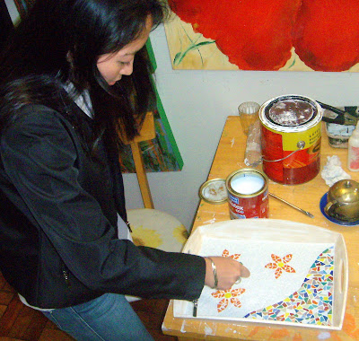 Tenho um atelier em Perdizes, um lindo bairro de São Paulo. Trabalho com mosaicos, pintura em vasos e telas, pintura e customização de móveis e objetos de decoração.