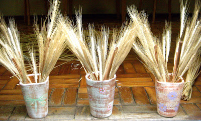 Os vasos com mandalas são vasos de parede, e os outros são potes que servem tanto para arranjos com flores secas, como para flores.