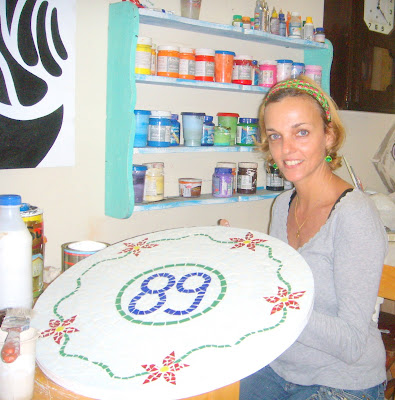 Tenho um atelier em Perdizes, um lindo bairro de São Paulo. Trabalho com mosaicos, pintura em vasos e telas, pintura e customização de móveis e objetos de decoração.