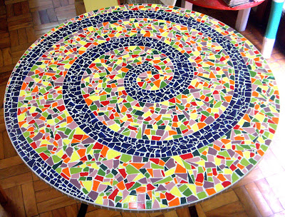 O tampo mede 1,10cm. de diâmetro e foi feito com cacos de azulejos. Vocês não imaginam o trabalhão que deu!!! Mas graças à Deus meus clientes AMARAM!!!
