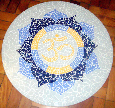 A partir da escolha das cores e do desenho inicial, fiz um projeto , e arrumando algumas partes fiz a mandala, que mede 70 cm.. Observem o símbolo do Om no centro, mais um diferencial nesta placa .