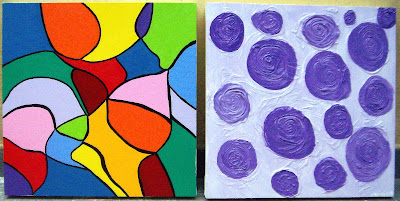 Estas três telas foram pintadas por minha aluna Mônica no CURSO DE PINTURA EM TELA. Todas foram confeccionadas com tinta acrílica, e a lilás e roxa também com textura.