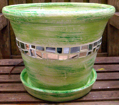 Vaso médio com pátina verde e mosaico de cacos de espelhos