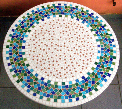 Fiz estes dois tampos em mosaico na última semana. Ambos foram feitos com pastilhas de vidro e com muuuuuuuuuuuuito branco. Estou AMANDO branco misturado com cores, dá uma leveza, deixando as peças mais delicadas.