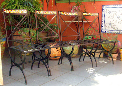 Fiz esta mesa e as cadeiras com mosaico sob encomenda.