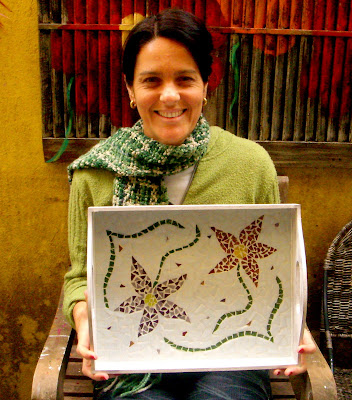 Esta é minha querida aluna Cris com sua bandeja feita aqui no Atelier, no CURSO DE MOSAICO.