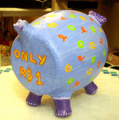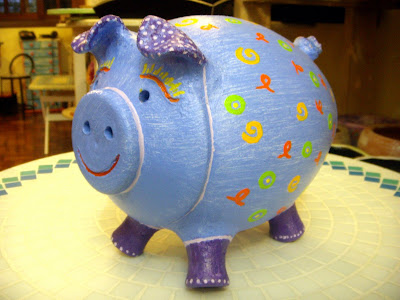 Cofrinho de cerâmica, pintado com tinta acrílica