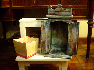 Nestas 2 últimas fotos, peças feitas aqui no Atelier por minha querida aluna Carla. Com a Carla, faço de tudo um pouco: pintura em madeira, pátina envelhecida, decoupáge, pátina palha, stêncil. A Carla é muito prendada , e vou desenvolvendo o curso de acordo com suas necessidades.