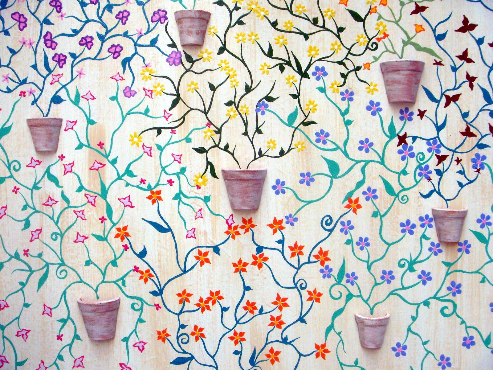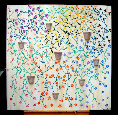 Linda sua tela.Ficou bem delicado.Os vasinhos foi uma idéia genial…