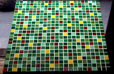 Tampo em mosaico de 50 x 50 cm., feito com pastilhas de vidro inteiras.