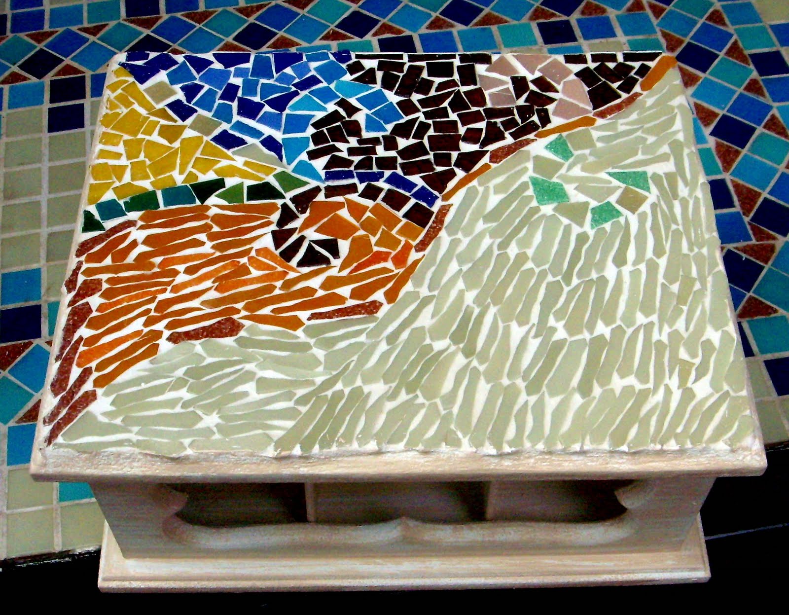 Esta caixa de chá foi feita por Vera aqui no CURSO DE MOSAICO.