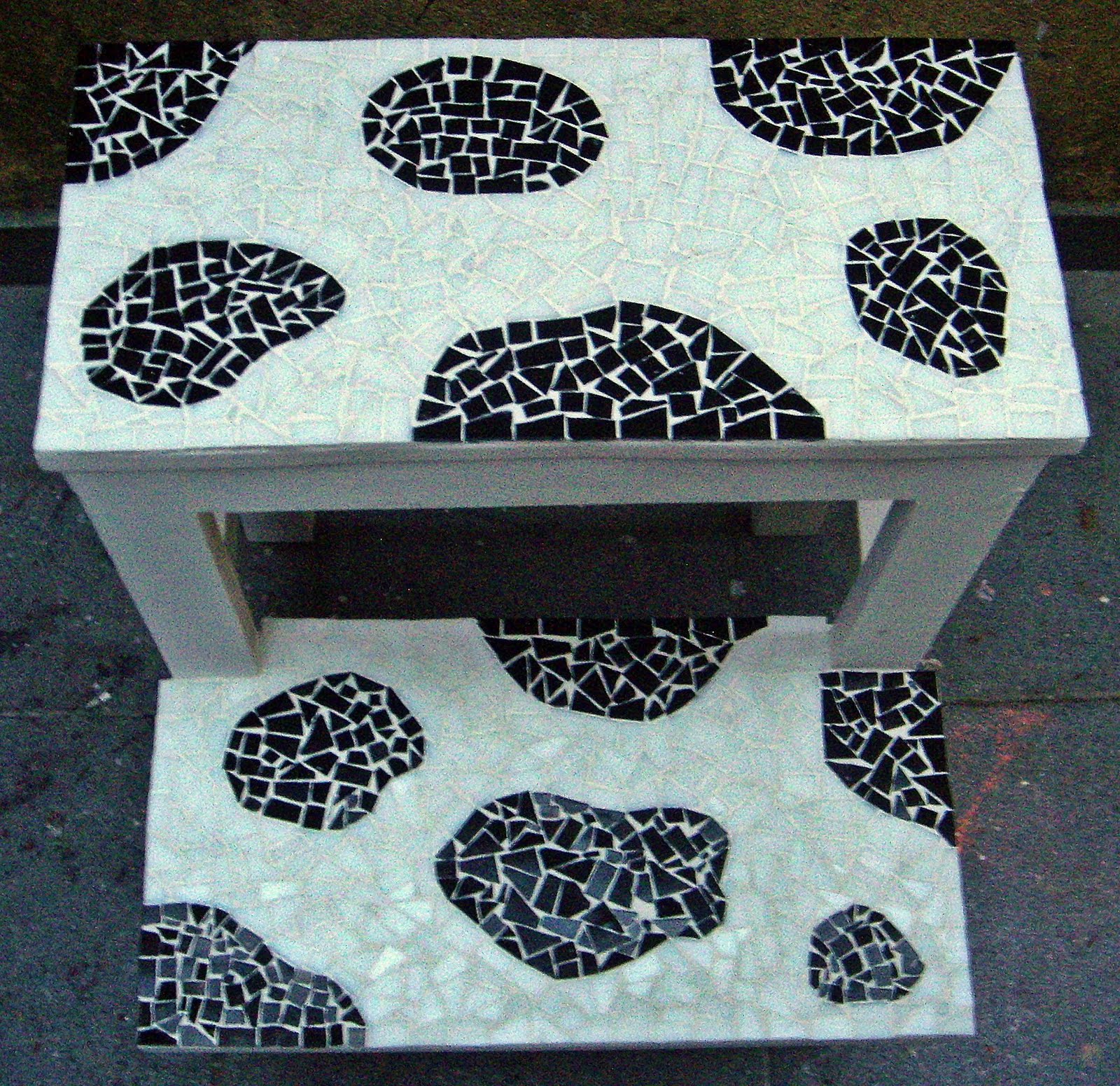 Na terceira foto, que não ficou muito boa pois já estava escuro, o resultado do segundo CURSO DE MOSAICO da minha aluna Bete. Coisa fofa, não? Uma escada de vaquinha, super moderna e chique !!! ADORO PRETO E BRANCO !!!