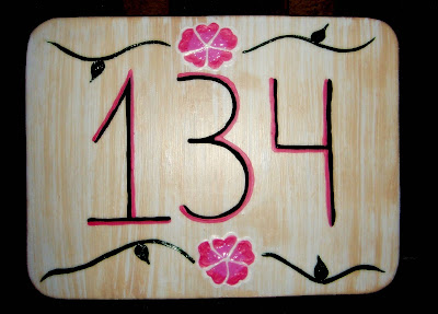 Número pintado à mão, em base de MDF, para porta de apartamento.Med.: 24 x 18 cm., com base de fibrocimento.