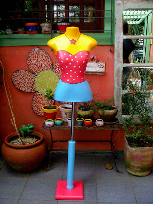 Tudo começou quando tive a idéia de perguntar pra minha amiga Emne se ela tinha um manequim que eu pudesse pintar pra colocar uns colares aqui no Atelier. Dois dias depois, ela chega com esta maneca aí da foto, mas toda feinha, suja e maltrapilha…rsrsrsrsrsr