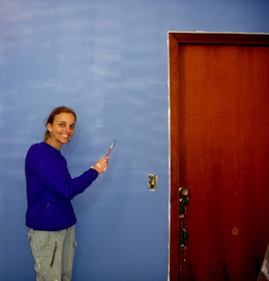Vero!!aproximei a foto e vi um brilhozinho no seus olhos do tipo "faço eu mesma"!! Menina vai ficar lindo seu atelier com essa parede azul! e não estou estranhando nada em vc própria estar pintando, afinal pra quem já pintou até a calçada, isso é fichinha! Tô curiosa pra ver o depois completo!!bjs