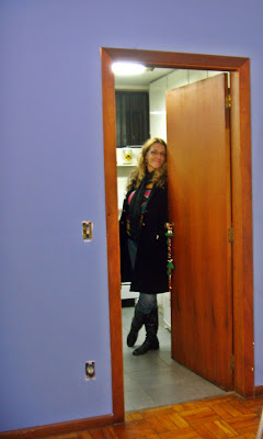 Então esta primeira foto que tem aí não tem mais, mudei tudo, quer dizer, ainda estou aqui reformando, mas a sala já está pintada, e foi o que deu mais trabalho. Ainda bem que existem outras pessoas malucas como eu, e minha aluna Vera veio me ajudar, ainda bem!!! Pintar parede dá trabalho, viu?