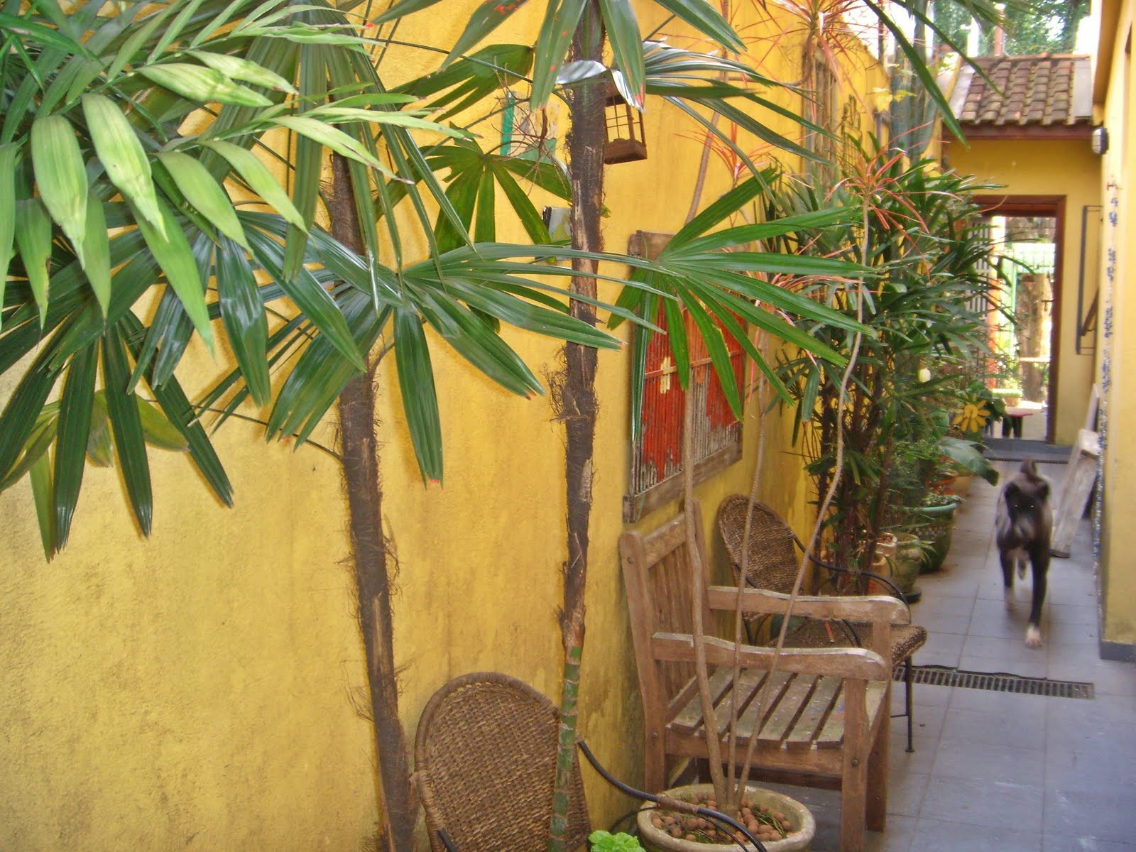 O corredor visto do ângulo oposto. Aqui, coloquei a maioria de minhas plantinhas, pois pega mais sol e é um pouco mais largo que a parte da frente.