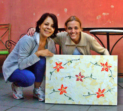 OBRIGADA !!!Eu e minha amada aluna Maria Inês, com a mesa que ela fez aqui no CURSO DE MOSAICO.