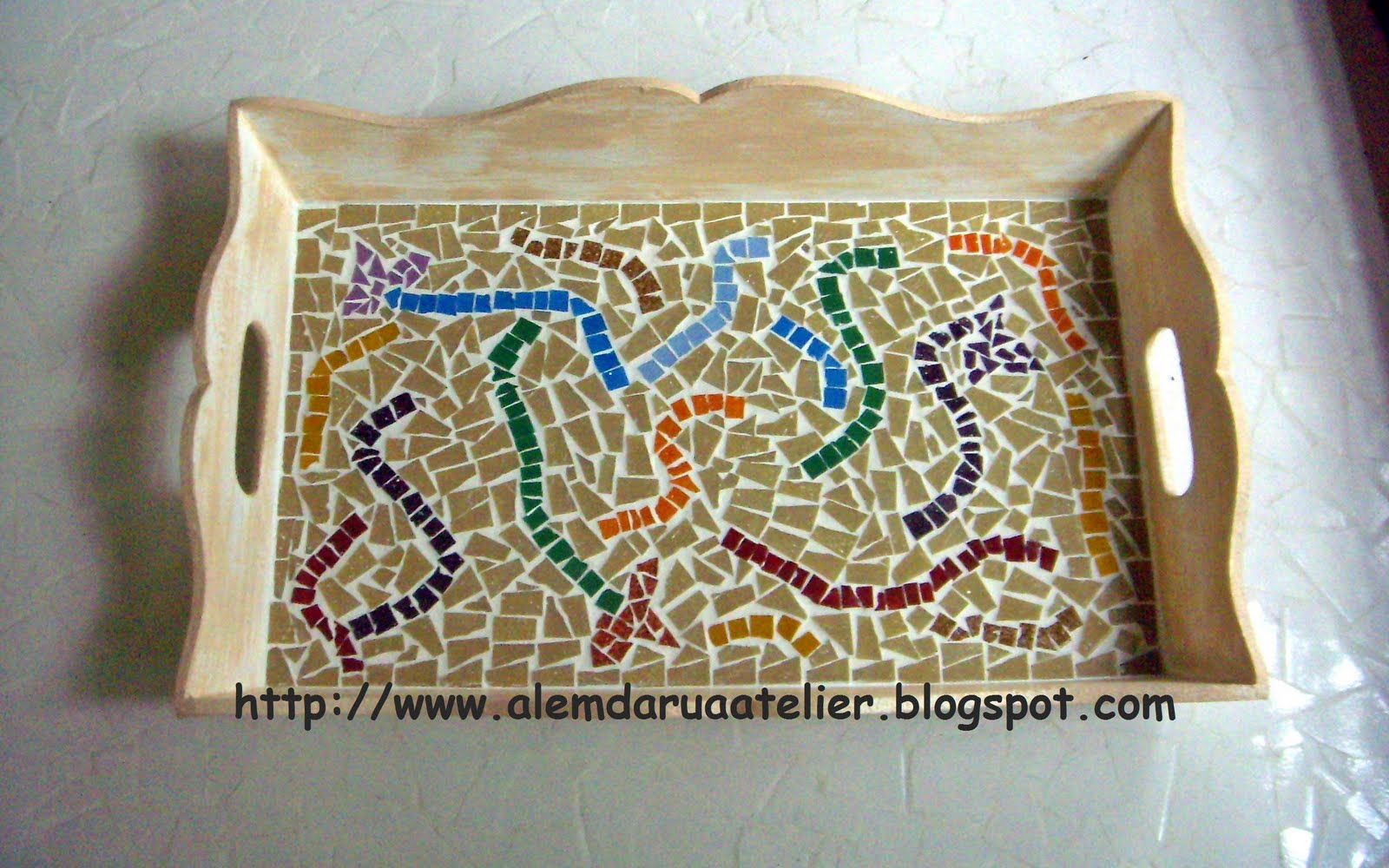 Olhem que mimo o oratório que Vera pintou aqui !!! Bem rústico, com pátina palha e uns arabescos muito lindos!!!Esta bandeja foi feita por minha querida aluna Tati aqui no CURSO DE MOSAICO.