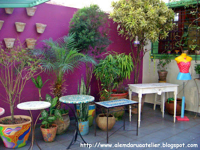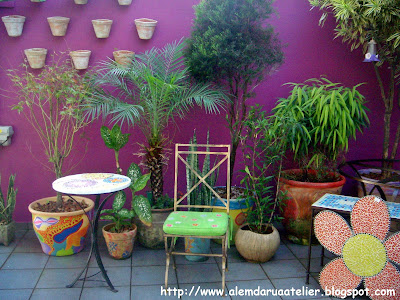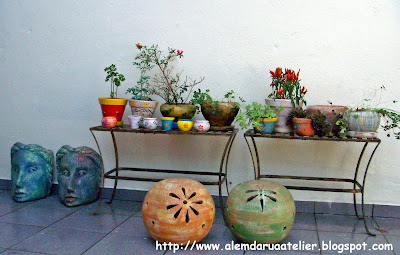 Com certeza daqui há um mês já estará tudo diferente, pois adoro mudar as coisas de lugar !!!Tive que mudar algumas plantinhas de lugar também, e adoro estes suportes em ferro, onde cabem muitos vasos.