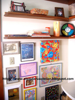 Ficou linda a arrumação do seu escritorio.. Adorei a parede hiper colorida de quadros.. Tb imagino um dia o meu assim. eheheheheheeh