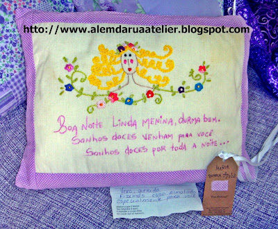 Chorei de felicidade ao ler a cartinha tão linda que as meninas me mandaram, ao ver a almofada com este bordado tão delicado e lindo, feito especialmente para a minha pessoa. E com um cheirinho bommmmmmmmmm que deixa todo o quarto perfumado agora!!!