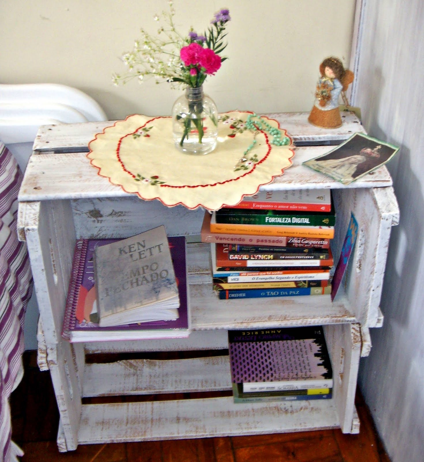 Ah, eu tbm tenho um criado mudo de caixote como o seu, mas o meu é em pé, e coloquei uma prateleira nele, acabei fazendo só um, e nem pintei, mas meu marido usa e adora.