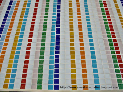 Fiz um mosaico simples, com pastilhas inteiras,esperei secar e rejuntei.
