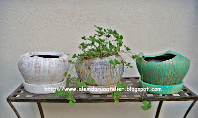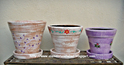 A suavidade da patina….a simplicidade e sutileza dos apliques e pequenos detalhes….deixa os vasinhos