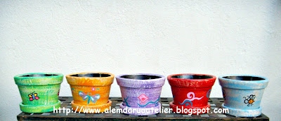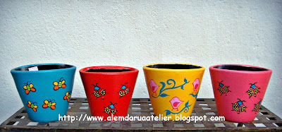Ve, vi seu post pela manhã e logo depois do almoço fui dar uma olhada nas minhas plantinhas plantadas diretamente na terra, estou feliz que estejam vivas, já que a maioria morre em minhas mãos. Seus vasos coloridos estão em clima de primavera. Lindinhos!