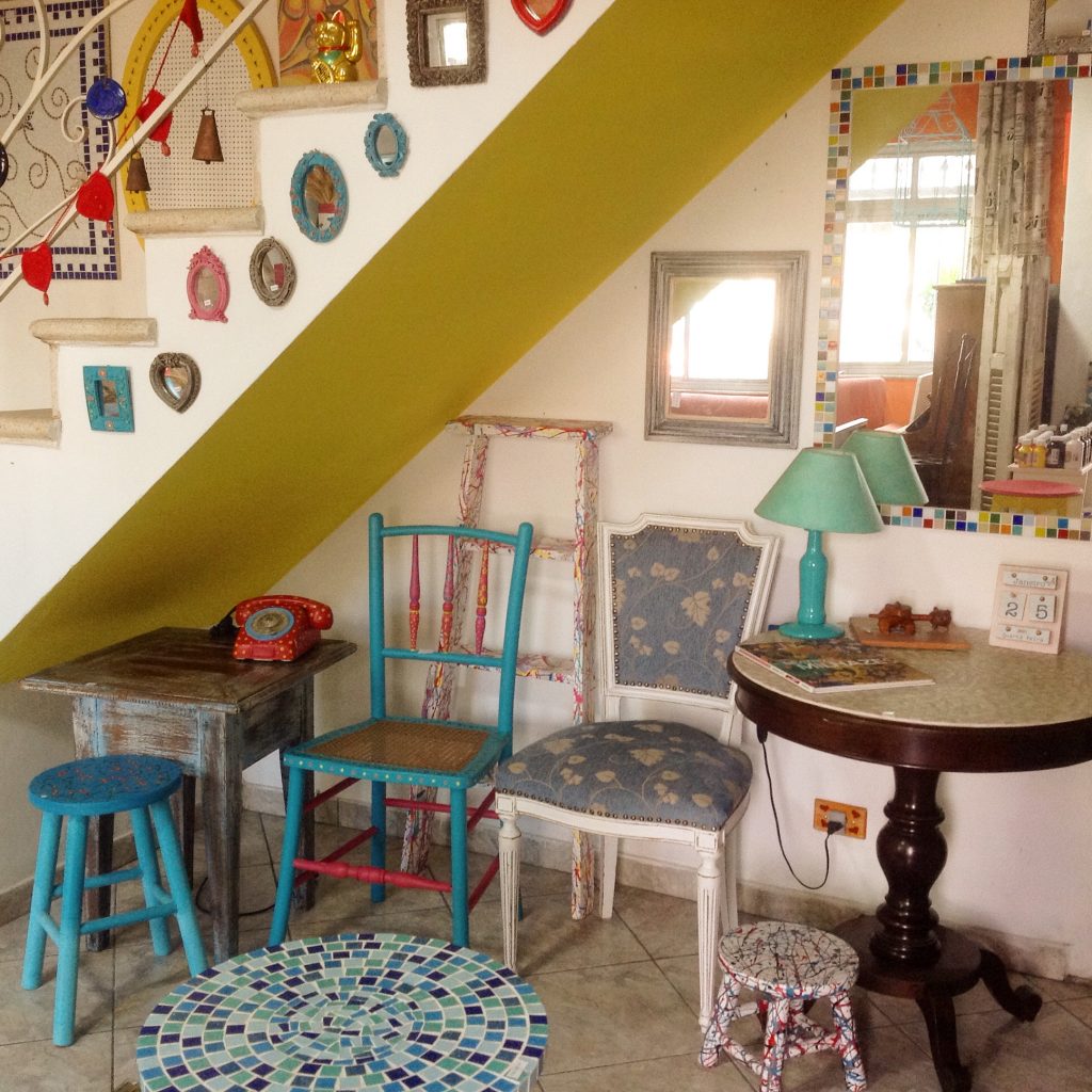 Tenho um atelier em Perdizes, um lindo bairro de São Paulo. Trabalho com mosaicos, pintura em vasos e telas, pintura e customização de móveis e objetos de decoração.