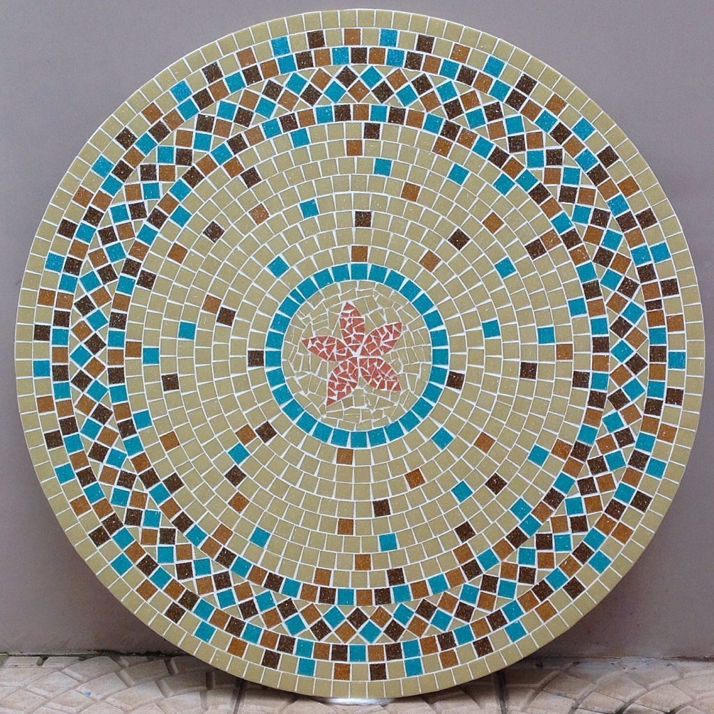O segundo mosaico foi feito em base de cimento, pois ficará exposto ao tempo. O primeiro foi feito em base de madeira, pois ficará em uma sacada coberta.
