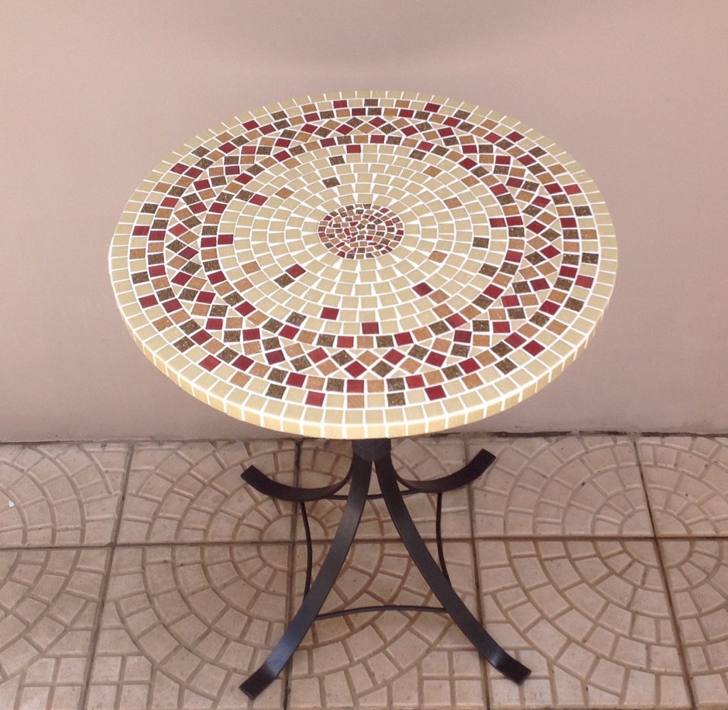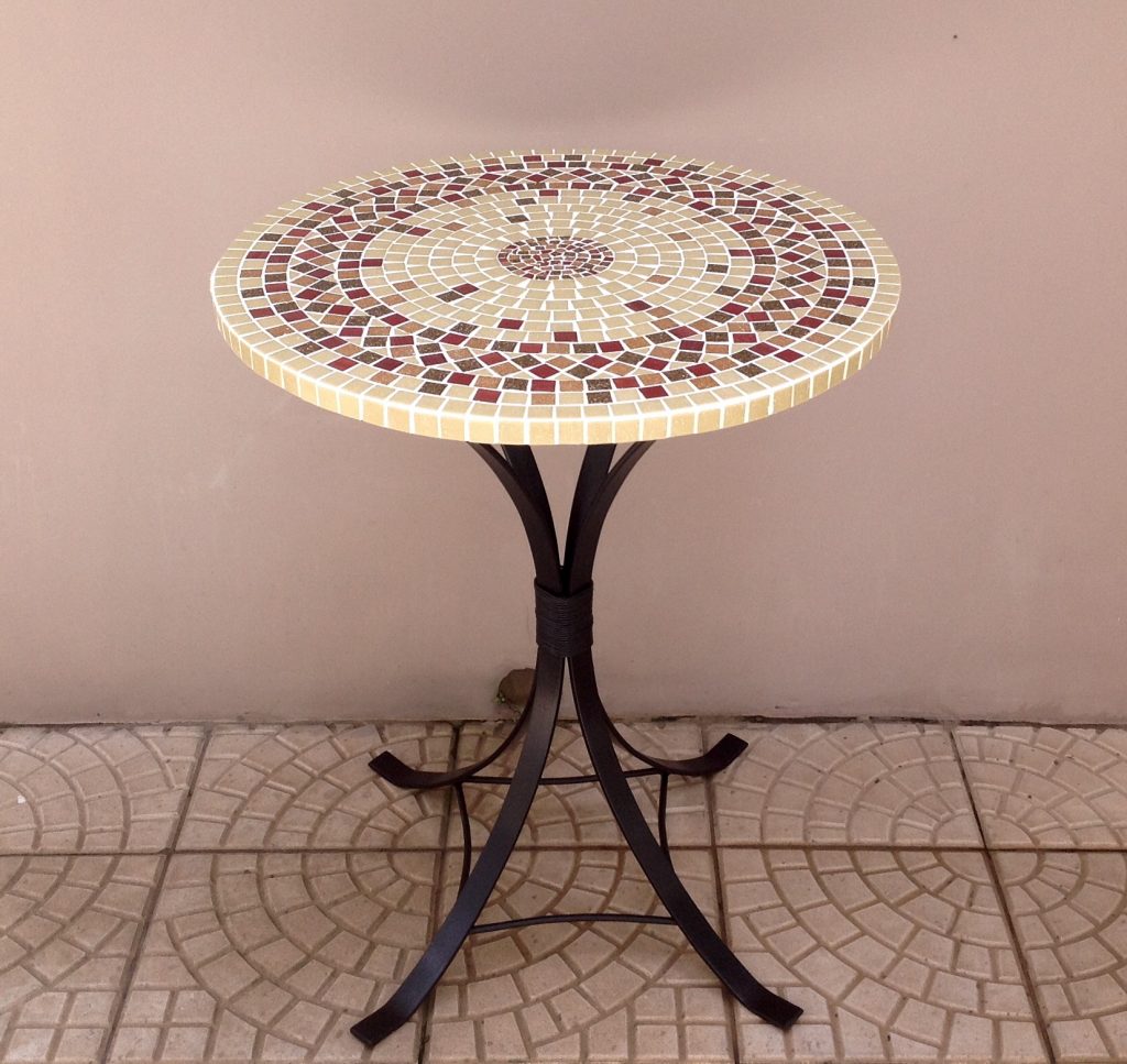 O tampo da primeira mede 80 cm de diâmetro, e o da segunda mede 60 cm.